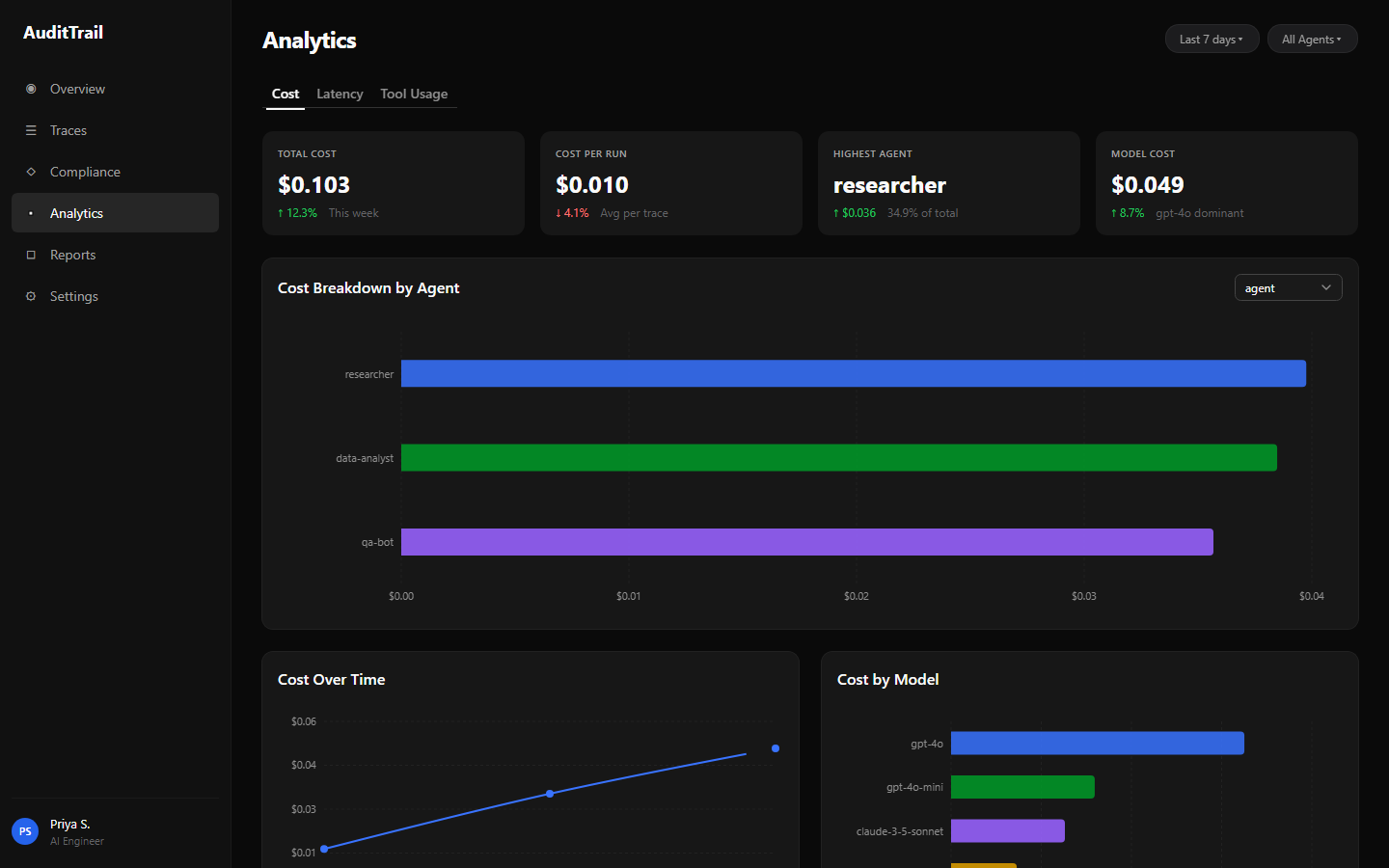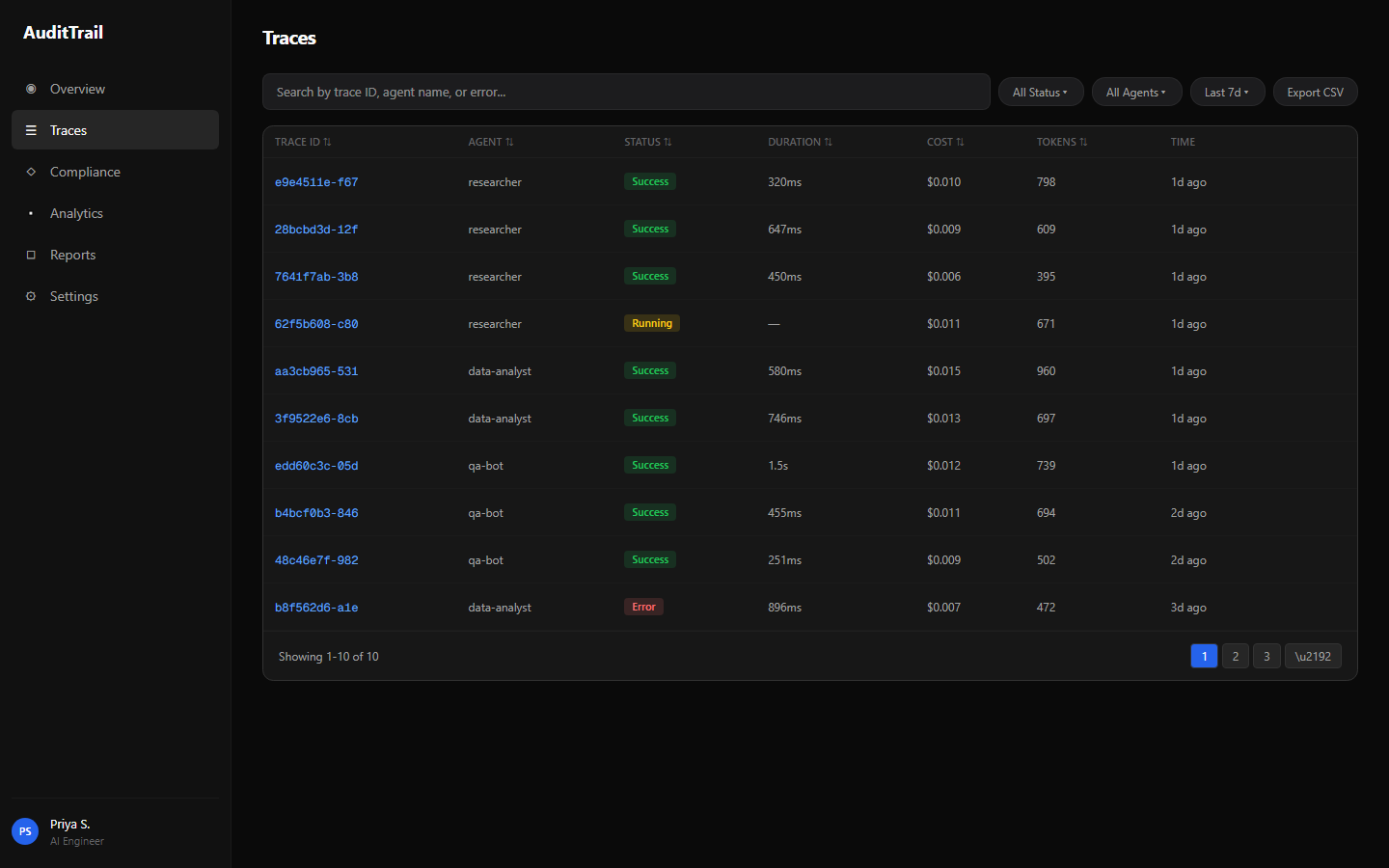 pip install audittrail -- works with LangGraph, CrewAI, and raw OpenAI SDK.